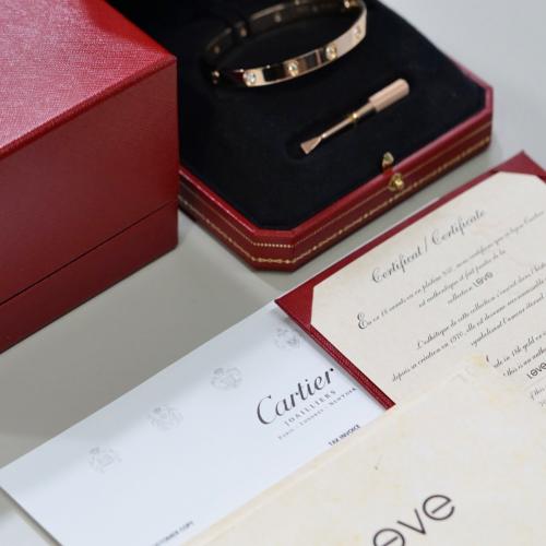 This Cartier Love Bracelet comes with its screw driver, original box, papers dated March 2019 and original sales invoice - making it a desirable and collectible accessory for any jewellery lover.