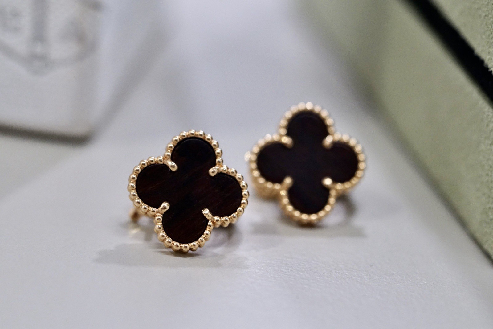 Rare Van Cleef & Arpels Vintage Alhambra Letter Wood Earrings 18k Gold